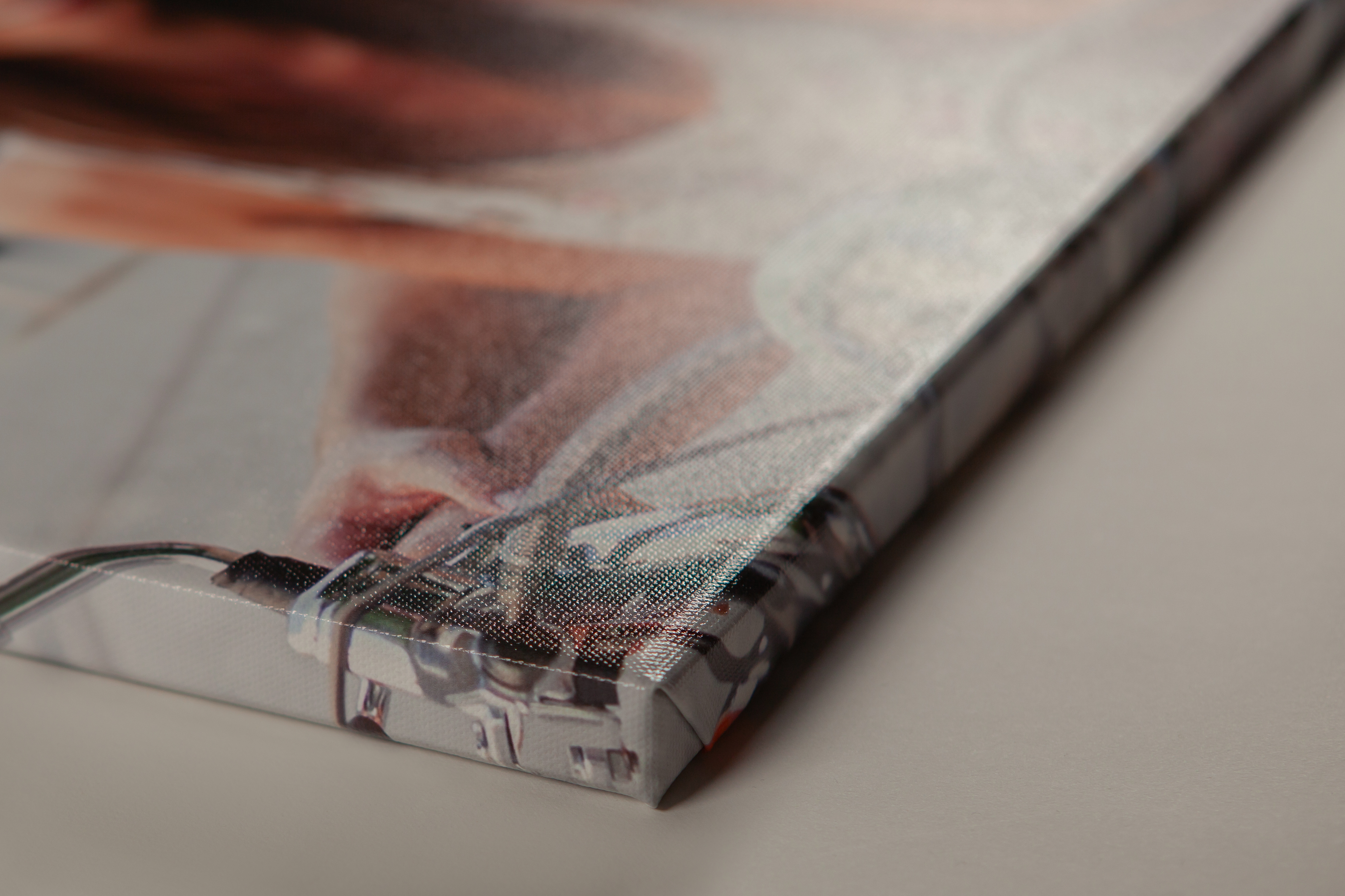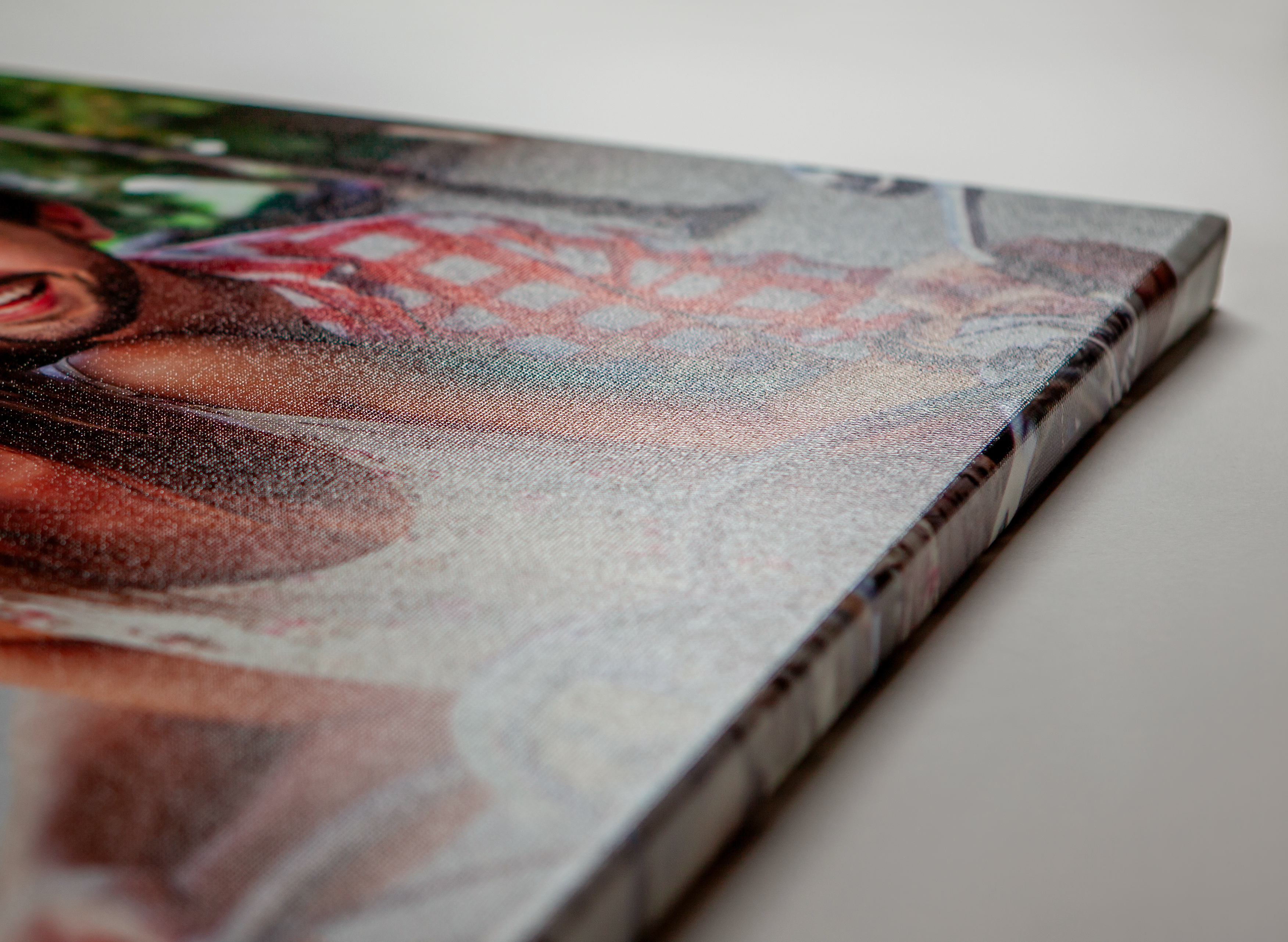Pozrite si detail štruktúry plátna, kvalitu tlače fotografií a precízne spracovanie okrajov obrazu na plátne zblízka. Každý detail spracovania fotografie na plátne je navrhnutý tak, aby zabezpečil profesionálny vzhľad, dlhú životnosť a estetický výsledok aj pri pohľade z bezprostrednej blízkosti.