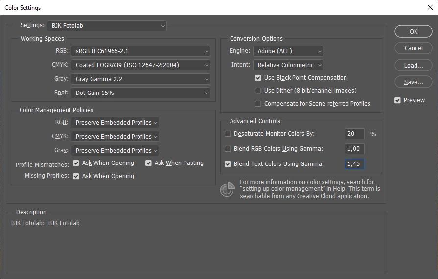Farebný priestor fotografií pre BJK Fotolab
